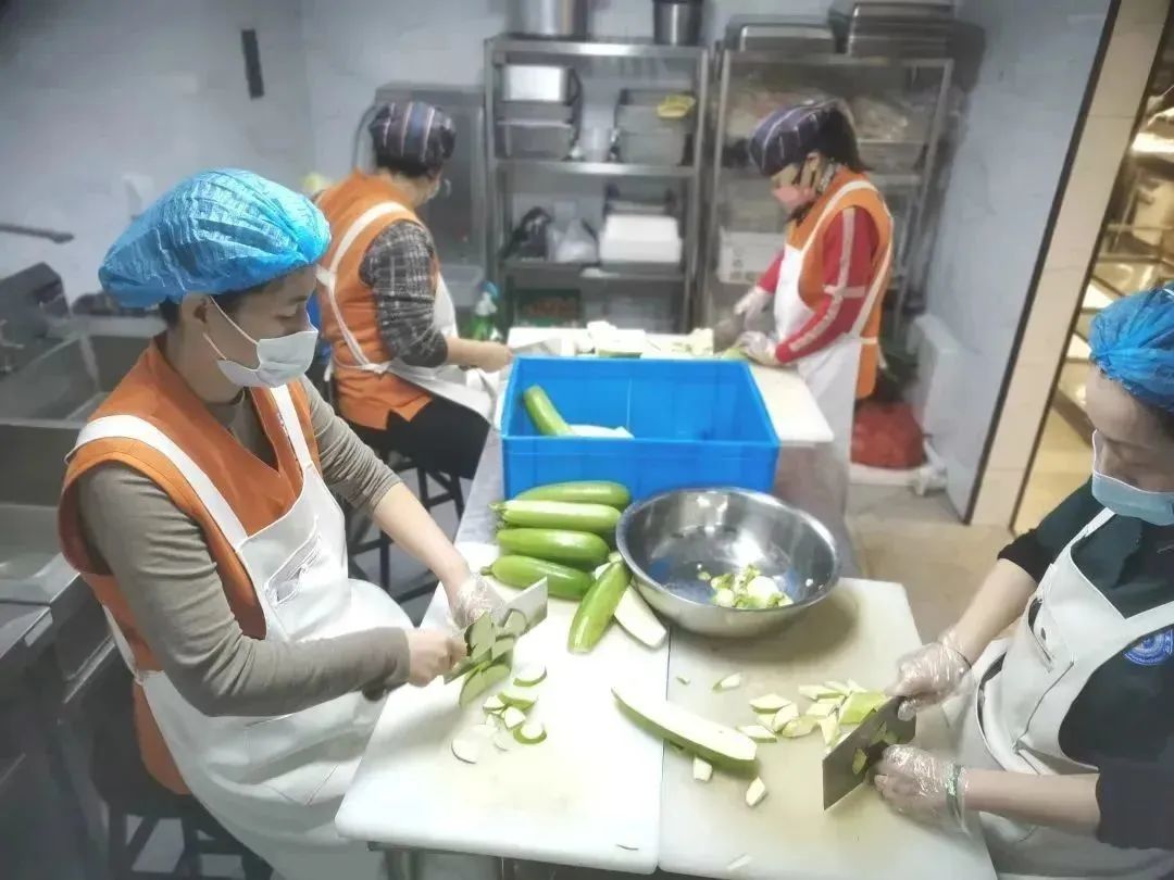 一刀刀,一铲铲,我们保障了一荤两素的菜品;