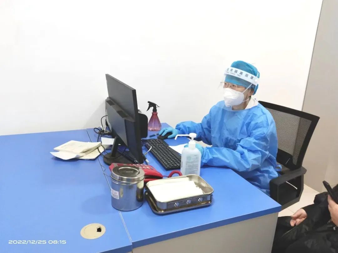 院领导来到儿童发热门诊,深情鼓励大家要全力以赴,勇毅前行,一起挺过艰难时刻。了解到退热药告急,迅速组织采购;看到门诊室温低,给大家添加羽绒服,安装空调;叮嘱做好个人防护,同志们暖在心里,更加全心投入到工作中。