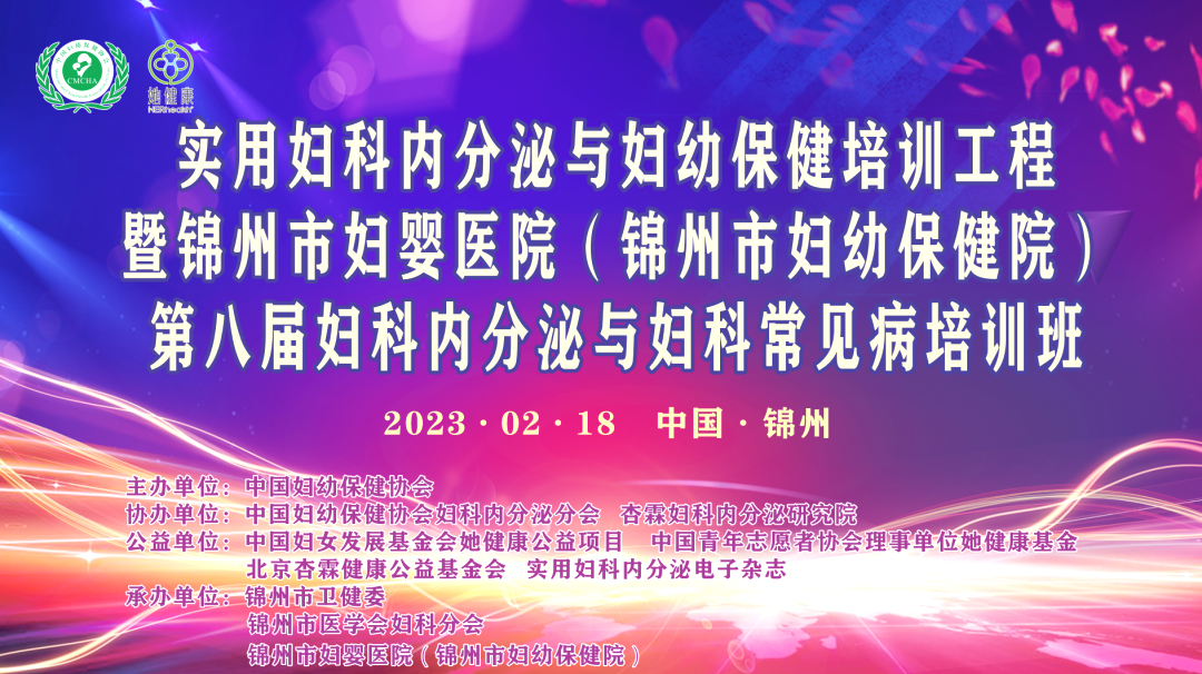 2023年2月18日,由中国妇幼保健协会妇科内分泌分会、杏霖妇科内分泌研究院及实用妇科内分泌电子杂志主办,锦州市卫健委、锦州市医学会妇科分会、锦州市妇婴医院(妇幼保健院)承办的实用妇科内分泌与妇幼保健培训工程暨锦州市妇婴医院(妇幼保健院)第八届妇科内分泌及妇科常见病培训班圆满落幕。