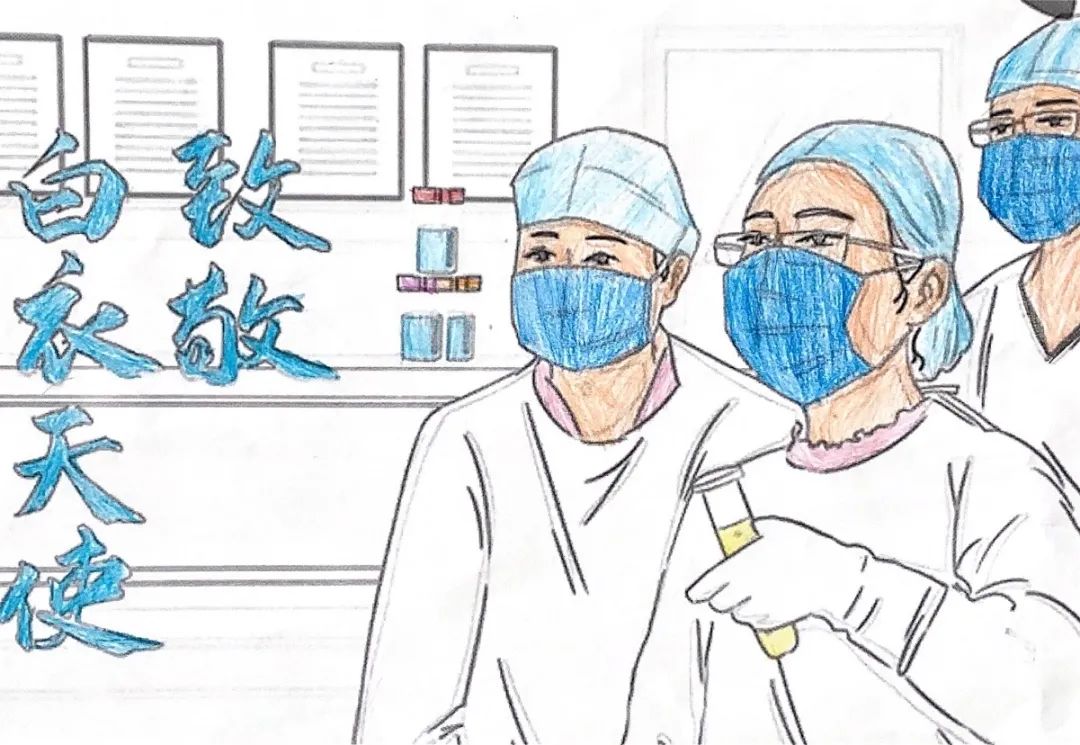不管是新闻里的报道,还是身边医务工作者对于疫情工作的付出,小朋友们都看在眼里,记在心里,用自己稚嫩的画笔记录下来。