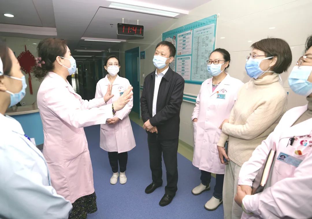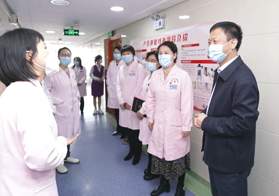 阴赪宏院长一行还到NICU、盆底产后康复科、乳腺科、小儿外科、内二科、产二科、妇一科、门诊进行了参观,每到一处都真诚的和大家沟通交流,对医院学科发展提出了建设性的意见。