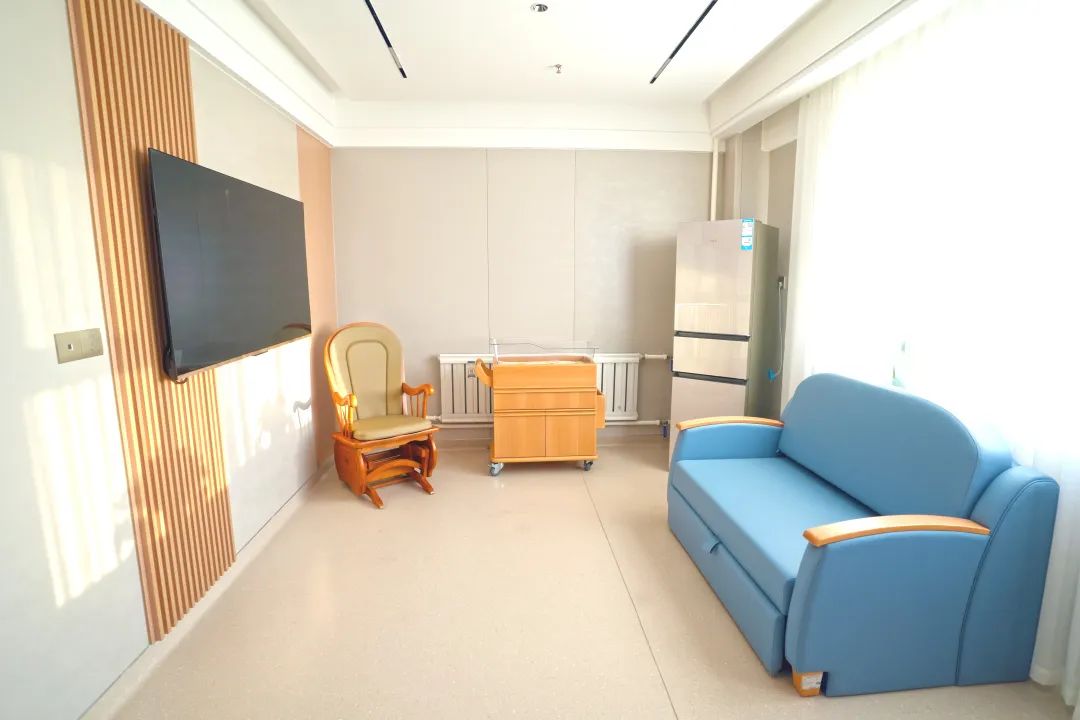 房间按家居式设置,温馨舒适,生活设施齐全,配备了陪护沙发、可移动餐桌、电视机、冰箱、微波炉、净水机,独立的卫生间、24小时热水、沐浴椅、智能马桶、智能水龙头等,令人倍感轻松温暖,充分享受到家的温馨,让产妇有种在家生产的感觉,轻松愉快地分娩。崭新的环境全部由环保材料装修,由专业检测机构检测室内空气污染物,全部符合国家标准。