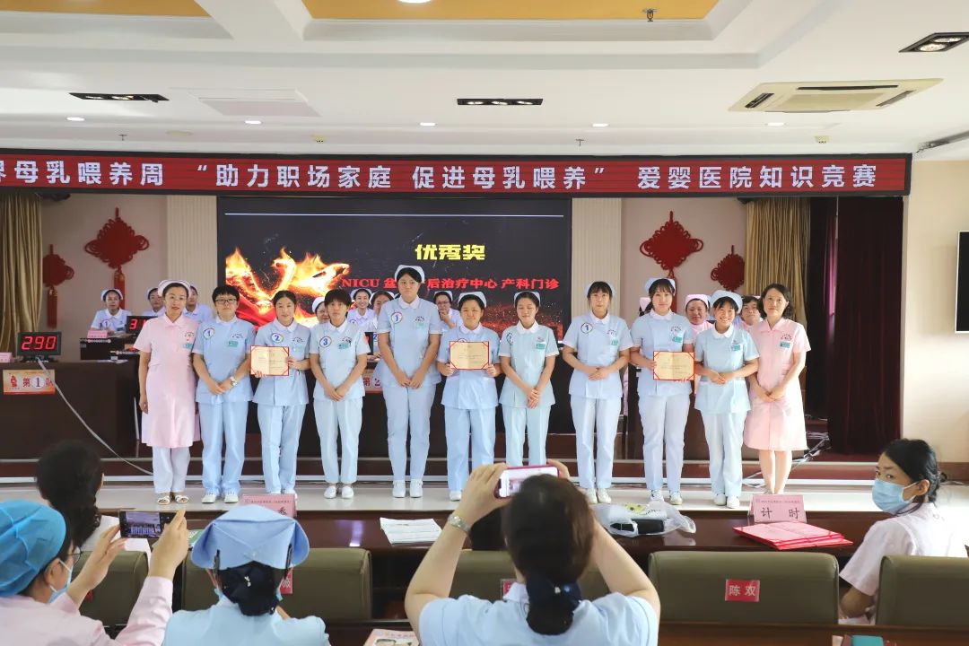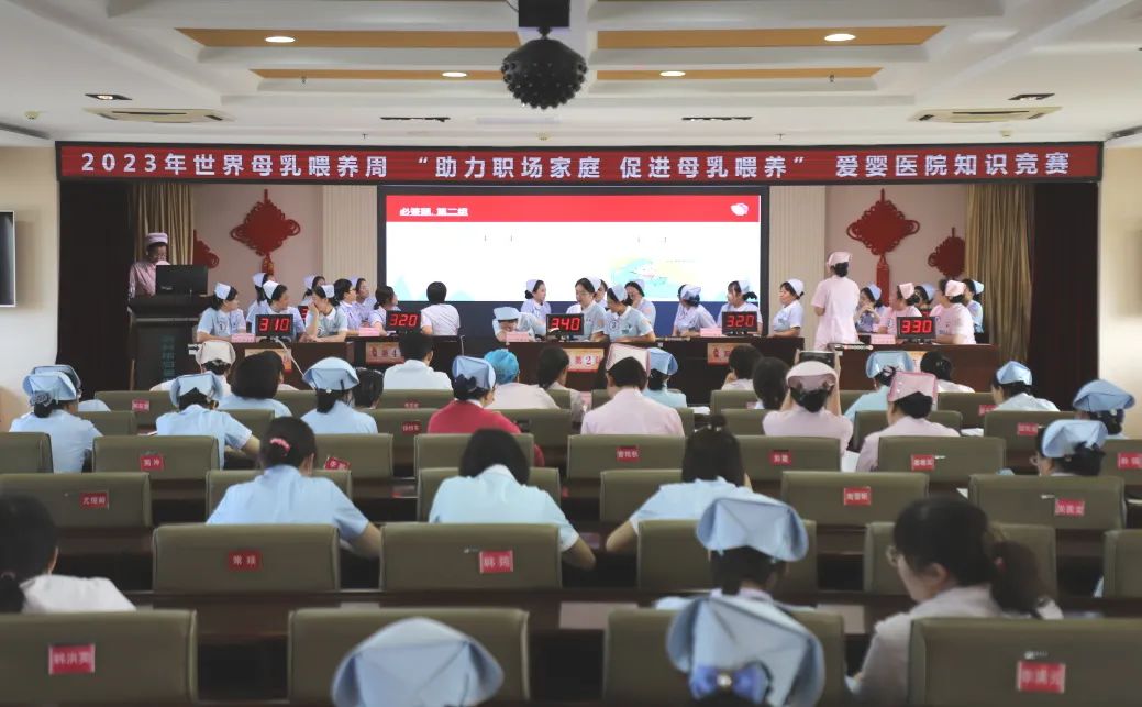 2023年8月1日-7日是第32个世界母乳喂养周,主题为:助力职场家庭 促进母乳喂养,旨在呼吁世界各国重视母乳喂养对母婴、对家庭、对社会的重要意义,以促进儿童的健康生存与发展。为进一步巩固爱婴医院成果,提升产儿科护理人员母乳喂养知识与技能,8月1日下午,锦州市妇婴医院(妇幼保健院)护理部成功举办爱婴医院知识竞赛。