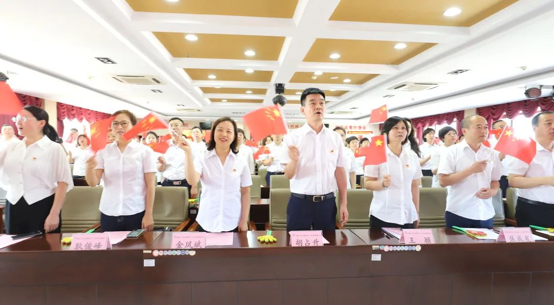 6月30日下午,妇婴医院举办庆祝建党102周年“七一”表彰大会暨红色经典演绎会。市政府副秘书长(兼)、卫健委党组书记、主任胡占升,市卫健委党组成员、副主任王颖,市卫健委妇幼科科长焦成友,医院领导班子、中层干部及党员代表参会。