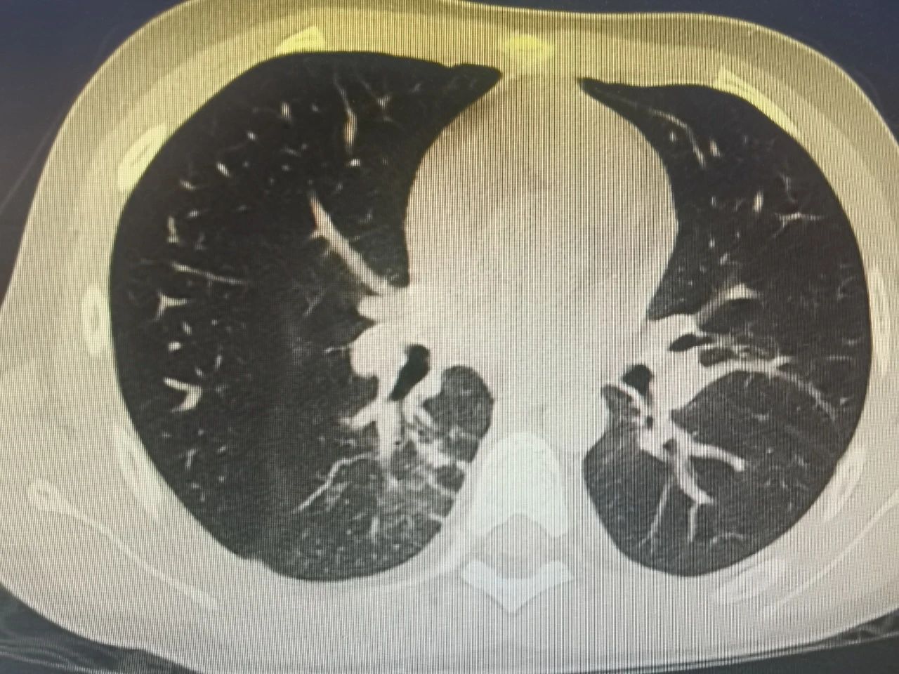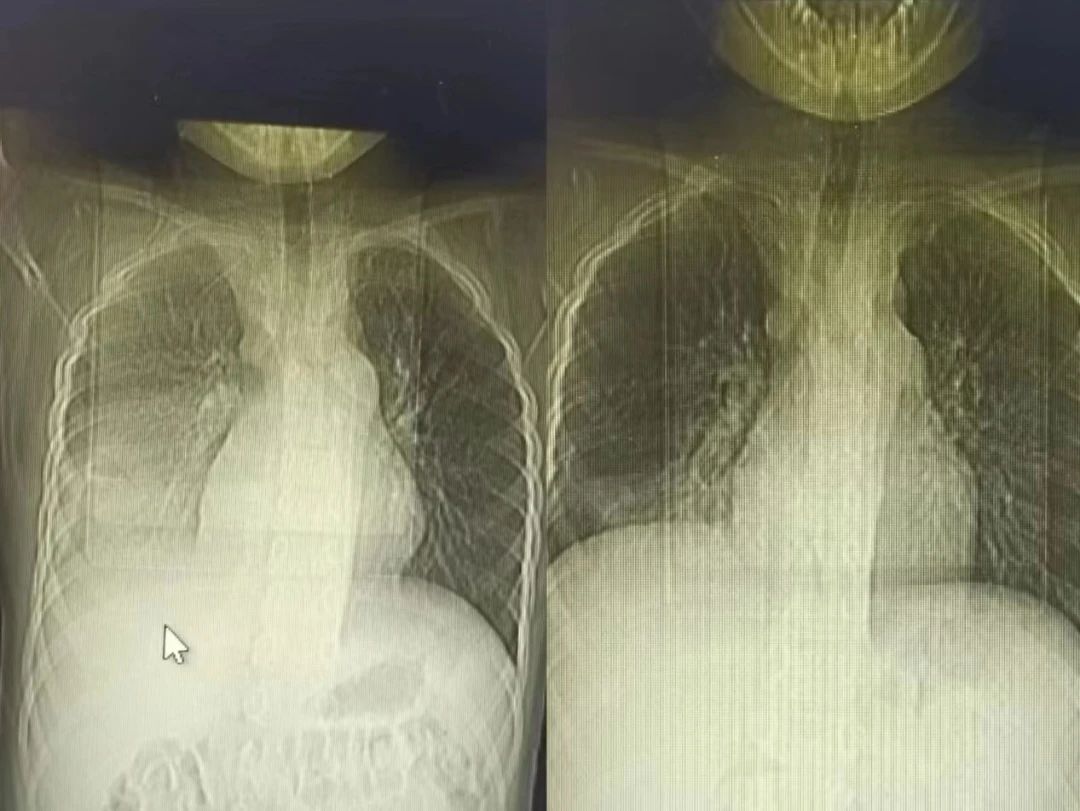 节假日期间,七七出现了间歇性胸痛,疼出了眼泪,又出现了一次低热,家属的心再一次提到了嗓子眼儿。刘铁英主任连忙赶到医院看望他,担心重症肺炎可能出现恢复期的肺栓塞,又紧急联系放射线,放射线曹主任马上安排会诊给他急查了肺增强CT。结果出来后没有发生栓塞,医护人员和家属都松了一口气,考虑跟胸水吸收后引起的胸膜牵扯痛有关系,对症处置后2-3天胸痛消失,发热也很快消失。