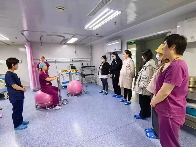 助产士们详细讲解并演示了促进产程进展的用具,带领孕妈妈们亲身体验分娩球、移步车等,使准妈妈们对分娩的过程有了更直观深刻的了解。分娩室赵敏主任详细讲解了促进自然分娩的方法,并与孕妈妈们充分的沟通交流,评估每位孕妈妈和胎儿的情况,制定个体化方案,提高自然分娩成功率。
