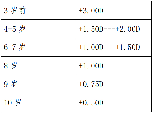 各年龄段远视储备: