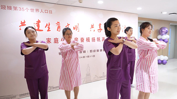 首先,家庭化产房二区医护人员与孕妈妈表演了助产舞蹈《爱的华尔兹》,展示了家庭化产房快乐、轻松分娩的服务理念。