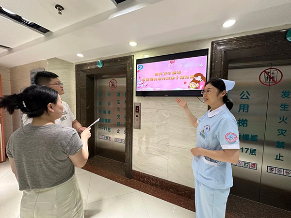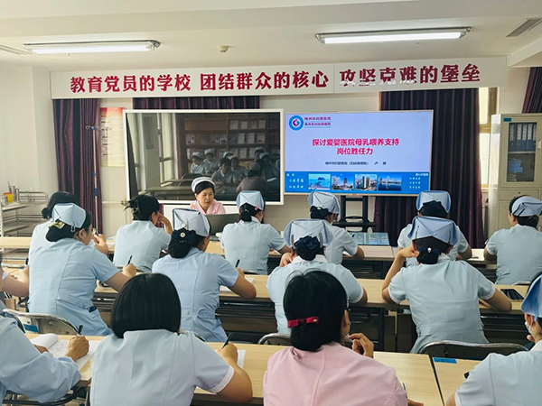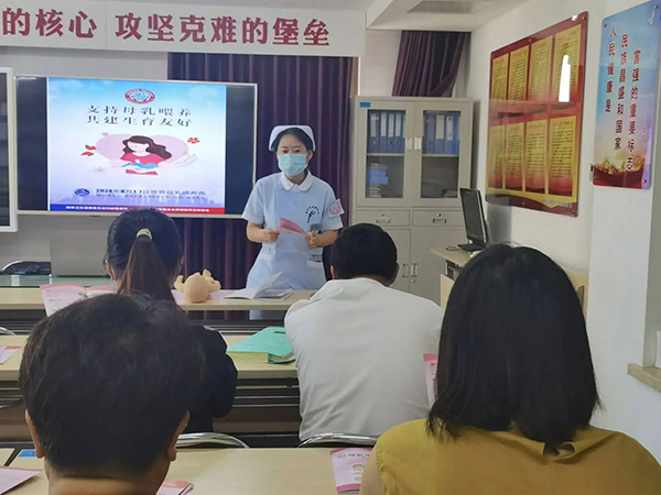 在母乳喂养周期间,为提升全院护理人员对母乳喂养知识的提升,开展了“探讨爱婴医院母乳喂养支持岗位胜任力”的培训。利用多媒体在医院门诊、病房以视频的方式宣传母乳喂养的知识及技能等,呼吁全社会重视母乳喂养。