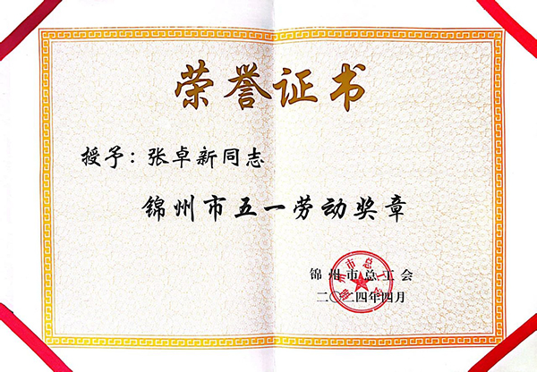 张卓新获得锦州市五一劳动奖章。