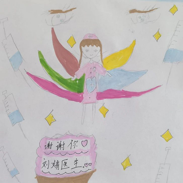小儿呼吸科走廊的墙上已经贴满了患儿的感谢信和画作,她们用稚嫩的笔触把喜欢的医生和护士的名字嵌在了画作之上,表达了对医护人员的感激和喜爱之情。在疾病面前,医患结成了统一战线,共同面对病痛,最终战胜疾病,医患之间也结下了一段段让人难以忘怀的“战友”之情。