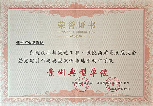 锦州市妇婴医院党委申报的《党建引领医院高质量发展》案例荣获健康品牌促进工程·高质量发展案例典型单位殊荣