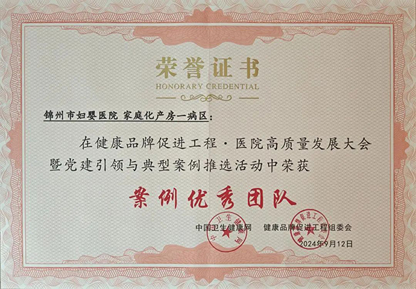 家庭化产房一区申报的《改善就医感受提升患者体验》案例荣获健康品牌促进工程·医院高质量发展典型案例优秀团队殊荣