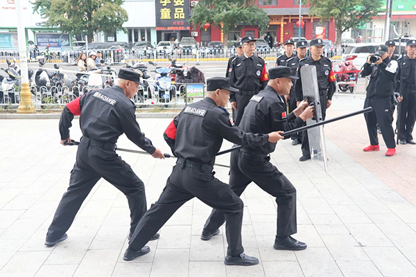 随后,进行了最小应急单元配合训练及示范。教官以盾牌、钢叉、长棍等应急器械为重点,对“最小作战单元”组合战术、现场控制、警戒方式等深入细致地讲解,并现场演示训练。