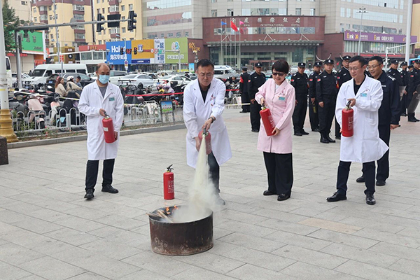 模拟演练后,还进行了消防器材的面对面培训和灭火实操演练,医院保卫科同志详细讲解了灭火器等消防器材的正确使用方法;实操过程中,所有人员认真学习操作,医院领导们现场参与灭火操练,熟练地按照灭火使用步骤将燃起的大火成功迅速地扑灭。通过系统的培训和实战操作,做到人人掌握灭火器的使用,确保在火灾发生时能够迅速、正确地使用灭火器进行初期灭火,为预防和减少火灾事故的发生提供有力保障。