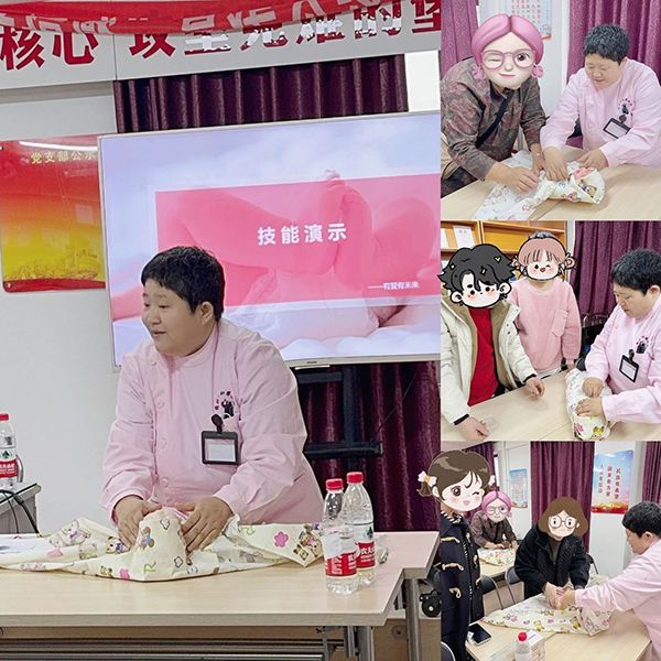 新生儿日常护理技能演示环节同样精彩。科室母乳喂养咨询师吴岩凭借丰富的经验,熟练地展示了新生儿喂养、拍嗝及包被方法,并讲解其中的技巧。