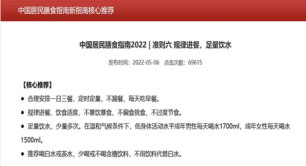根据2022年《中国居民膳食指南》里指出,足量饮水,少量多次,在温和气候条件下,低身体活水平的成年男性每天喝水1700ml,成年女性每天喝水1500ml为宜,相当于一天8杯水左右。对于肿瘤病人,尤其是在用药期间,饮水量适当增加,一般来说,白天间断性饮水,每次喝150~200毫升左右,可以选择白开水,淡茶水,矿泉水,可以依据个人具体情况而定。也可食用减少肢体浮肿的水果蔬菜,如西瓜和冬瓜等。