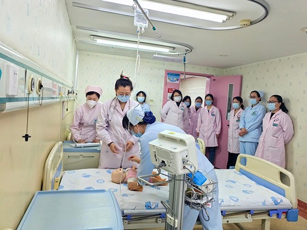 面对婴儿呛奶情况,护士迅速将宝宝侧卧,轻拍背部,清理呼吸道,防止窒息。每一个动作精准、熟练,尽显过硬的专业技能。经过紧张抢救,宝宝生命体征逐渐平稳,演练圆满成功。