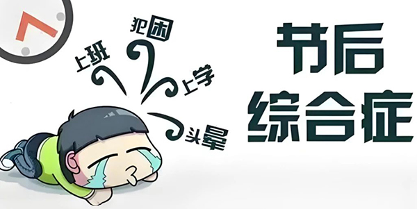 长假后,会出现失眠、精力不集中、情绪不太好的情况,甚至会有心慌胸闷从而影响到工作和生活,这是节后综合征的表现。由于放假期间的作息不规律、大鱼大肉、零食饮料等,也是导致节后“营养”综合征的原因。