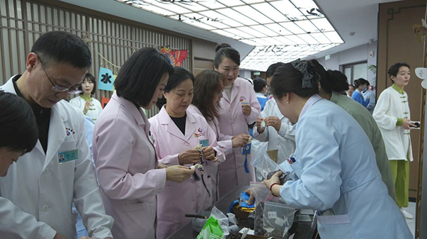 活动区秒变创意工坊,在“青囊手札”区,香附、薰衣草等药材化身为香囊精灵,女职工们亲自挑选中药材、研磨成粉、装填入香囊,制作出自己专属的香囊包。