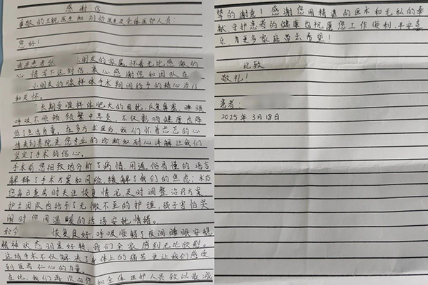 近日,天天出院时,妈妈满怀感激地送来了锦旗和感谢信。她激动地说:“非常感谢刘怡医生和王锐专家!现在孩子睡觉不打鼾了,体质也明显改善,吃饭都香了不少!”