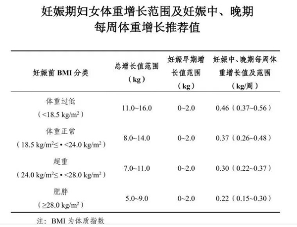 根据孕前BMI(体重指数)制定个性化目标:
