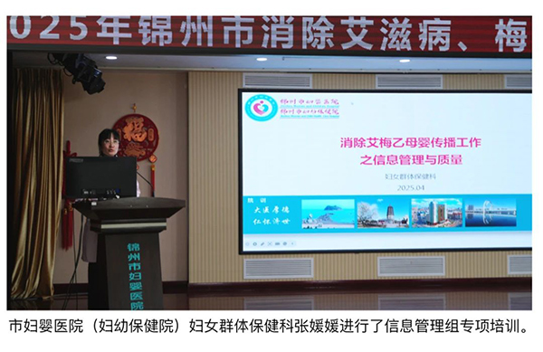 为深入推进我市消除艾滋病、梅毒和乙肝母婴传播工作,做好迎接国家评估认证准备,由锦州市卫生健康委主办、锦州市妇婴医院(妇幼保健院)承办的全市消除艾滋病、梅毒和乙肝母婴传播工作推进会暨专项培训会于4月21日顺利召开。培训会由市妇婴医院(妇幼保健院)纪委书记杨忠伟主持,市卫生健康委党组成员、副主任王颖,市妇婴医院(妇幼保健院)党委书记洪琦出席会议并讲话。市妇婴医院(妇幼保健院)院长金凤斌、妇幼健康与家庭发展科科长李瑛出席会议。
