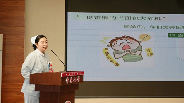 小儿外科护士长、主管护师周冬雪则为大家带来了海姆立克急救法的教学,她利用模型进行原理演示,并手把手指导同学们掌握操作要领,帮助学生掌握急救技能,在危急时刻能够自救互救,为抢救生命争取宝贵时间。