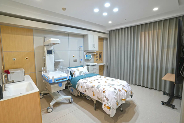 病室环境温馨舒适,设有电视、冰箱、微波炉、直饮机、空气净化器、衣柜、折叠式陪护床等家具一应俱全,且24小时供应空调、热水,有独立的卫生间、配有智能马桶、热水器、洗浴室,让您在待产分娩过程中,体验家一样的温暖。