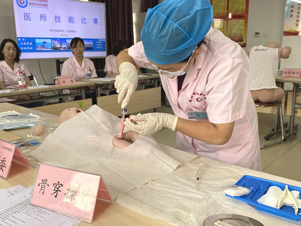 本次技能比赛活动吸引了来自全院各临床科室的68名业务骨干踊跃参与,覆盖医疗、护理等多个岗位,共分为儿内科组、产科系-中医科-生殖分院组、妇科系-乳腺科-儿外科组、护理组。竞赛项目设置紧贴临床实战需求,涵盖单人徒手心肺复苏、腰穿、胸穿、骨穿、宫腔球囊填塞术、腹部四步触诊法、皮肤切开缝合腔镜操作、阴道后穹窿穿刺、腹腔镜下捡豆术、静脉输液、吸痰、吸氧、鼻饲法等核心急救与常用技能。
