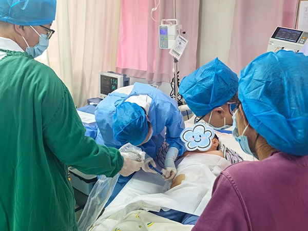 涉及多器官受累的复杂重症,单一科室的力量远远不够。我院立即启动高级别多学科协作(MDT)模式。以我院来自上海复旦大学附属儿童医院张可副院长的带领下,院内消化科、呼吸科、小儿外科、中医科、放射线科、超声科等专家火速集结,共同研判病情,制定全方位的治疗方案。他们以其深厚的专业造诣和丰富的临床经验,为救治工作提供了权威的指导和高瞻远瞩的战略方向,给予了团队极大的信心和支持。并由小儿外科医生团队果断为患儿施行了腹腔穿刺置管引流术,成功引流出大量腹水,极大地减轻了腹腔压力与胰液的损害,成为病情转折的关键一步。中医科则辅以中药调理,协同促进胃肠功能恢复。