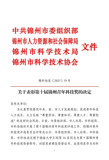 近日,在市委组织部、市人社局、市科技局、市科协联合组织开展的第十届锦州青年科技奖评选活动中,我院中心实验室王佳美同志凭借扎实的科研功底、突出的创新能力和丰硕的学术成果,成功荣获“第十届锦州青年科技奖”荣誉称号。此次评选竞争激烈,王佳美同志能够脱颖而出,不仅是其个人长期深耕科研一线、勇于攻坚克难的结果,更彰显了我院在人才培养、科研创新方面的卓越成效,进一步提升我院科研水平,推动区域医疗事业发展。