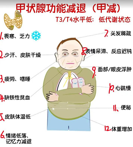 2.体重异常增加/肥胖:由于新陈代谢减慢,能量消耗减少,即使吃得不多,也容易发胖。