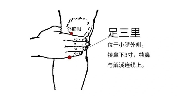 足三里穴(外膝下3寸):健脾胃,增强免疫力。