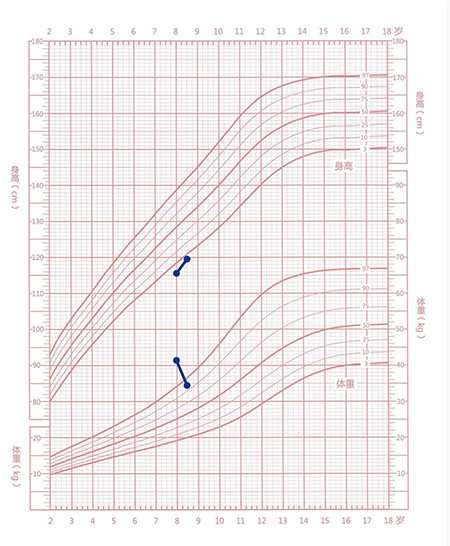 1. 定期监测生长曲线:定期测量并记录孩子的身高、体重,绘制生长曲线图。如果身高增长连续低于正常速度(如每年低于5厘米),或身高百分位持续下降,应警惕。